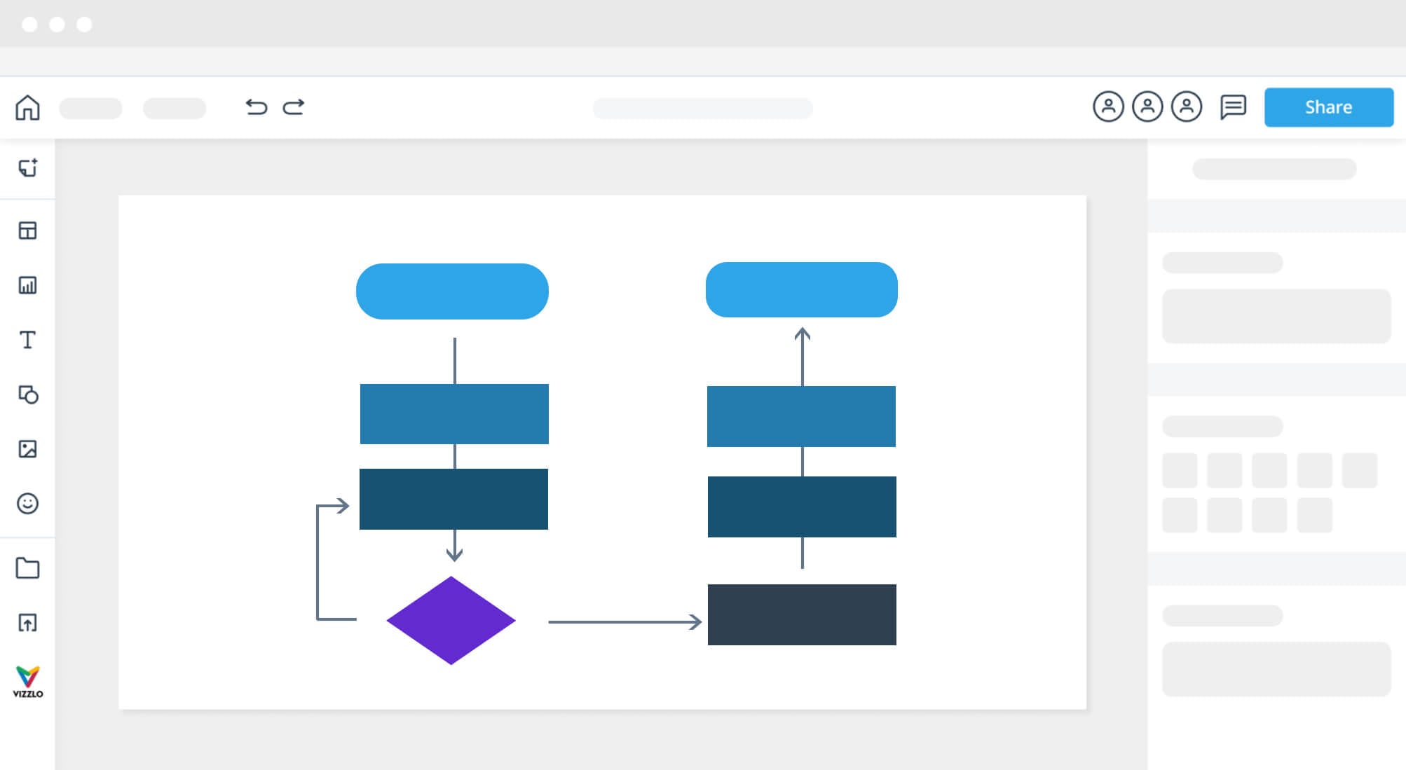3. Keep adding shapes and text as you need them — PRO tip: If you group the shape and the text, they will be much easier to move around, duplicate and edit and you will create your flow chart much faster.